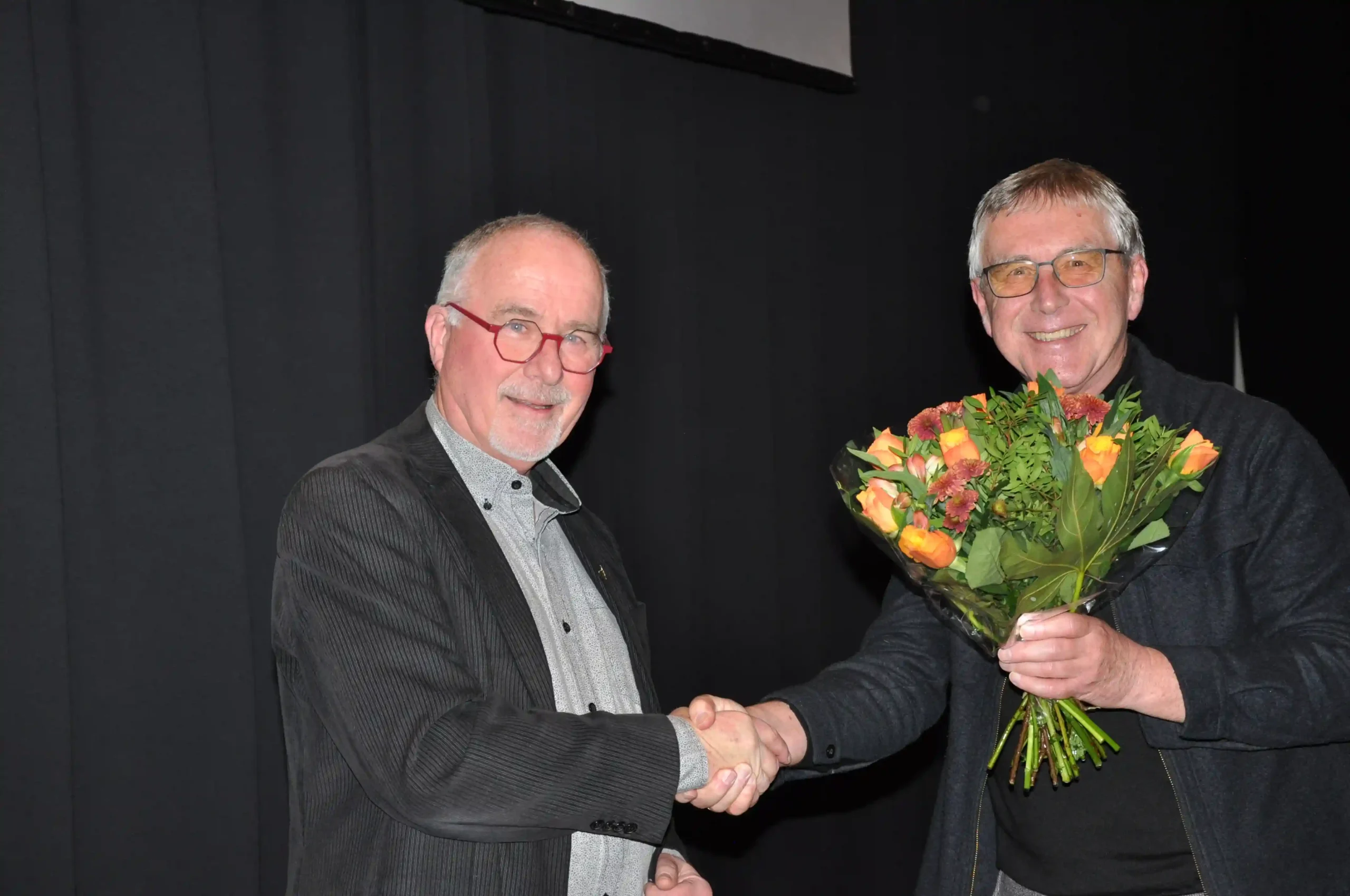 De druk bezocht nieuwjaarsreceptie werd, nadat we elkaar de beste wensen voor 2024 hadden toegewenst, door onze voorzitter Herman de Best een terugblik gegeven op het jaar 2023. Vervolgens werden de jubilarissen in het zonnetje gezet met opspelden van een bijbehorende jubileumspeld en boeket bloemen.